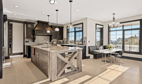 This beauty of a home was inspired by its natural surroundings. Bringing a bit of that western appeal with vintage barnwood complimenting the kitchen island and fireplace mantel. This home boasts a quiet luxury in all its glory.